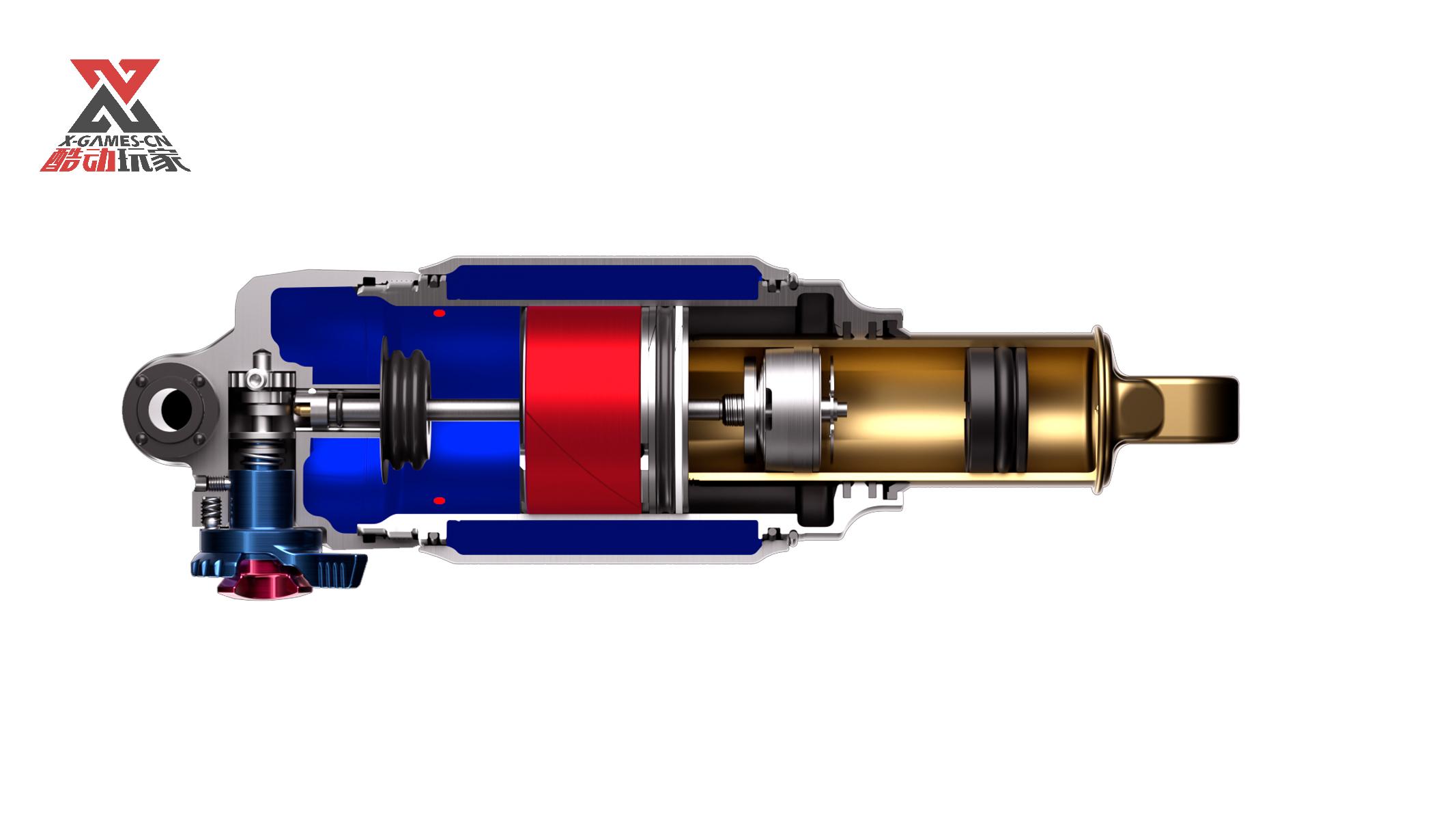 当两个气室都打开时,GENIE的空气量增大。GENIE气口连接内气室和外气室,使避震器行程前70%的曲线更加平缓。