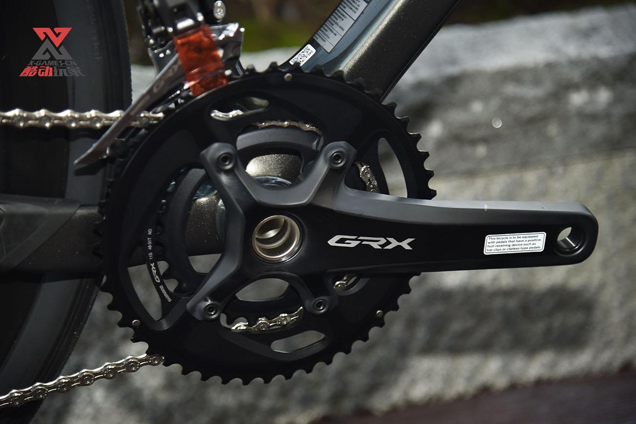 后飞轮采用11—34T的11速飞轮和长腿GRX后拨链器,加上48和32T的两片牙盘,可以面对任何长距离路面爬坡和平路加速。如果玩车的人要面对一个长达10公里,基本坡度在10%的路况,一定会感激32T牙盘带34T飞轮的齿比输出。长距离爬坡,合适的齿比真的可以延长车手的耐力。