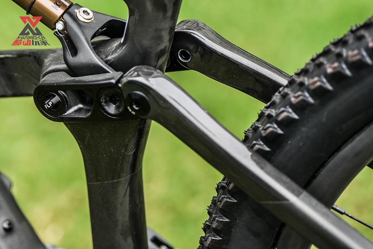 Orbea Occam-SL,前后140mm避震行程,以及采用了Oiz一样的避震、升降坐杆的Squidlock线控系统,前后避震线控让Occam-SL这台车不仅具备征服更难林道的能力,同时还具有媲美全避震XC的踩踏性能。车架的下管与立管之间加入了非对称设计的单边桥设计,以增加车架的刚性。Occam-SL的避震悬挂系统为转点后轮轴共轴的设计,也带来更简单的维护和更灵敏的避震性能。
