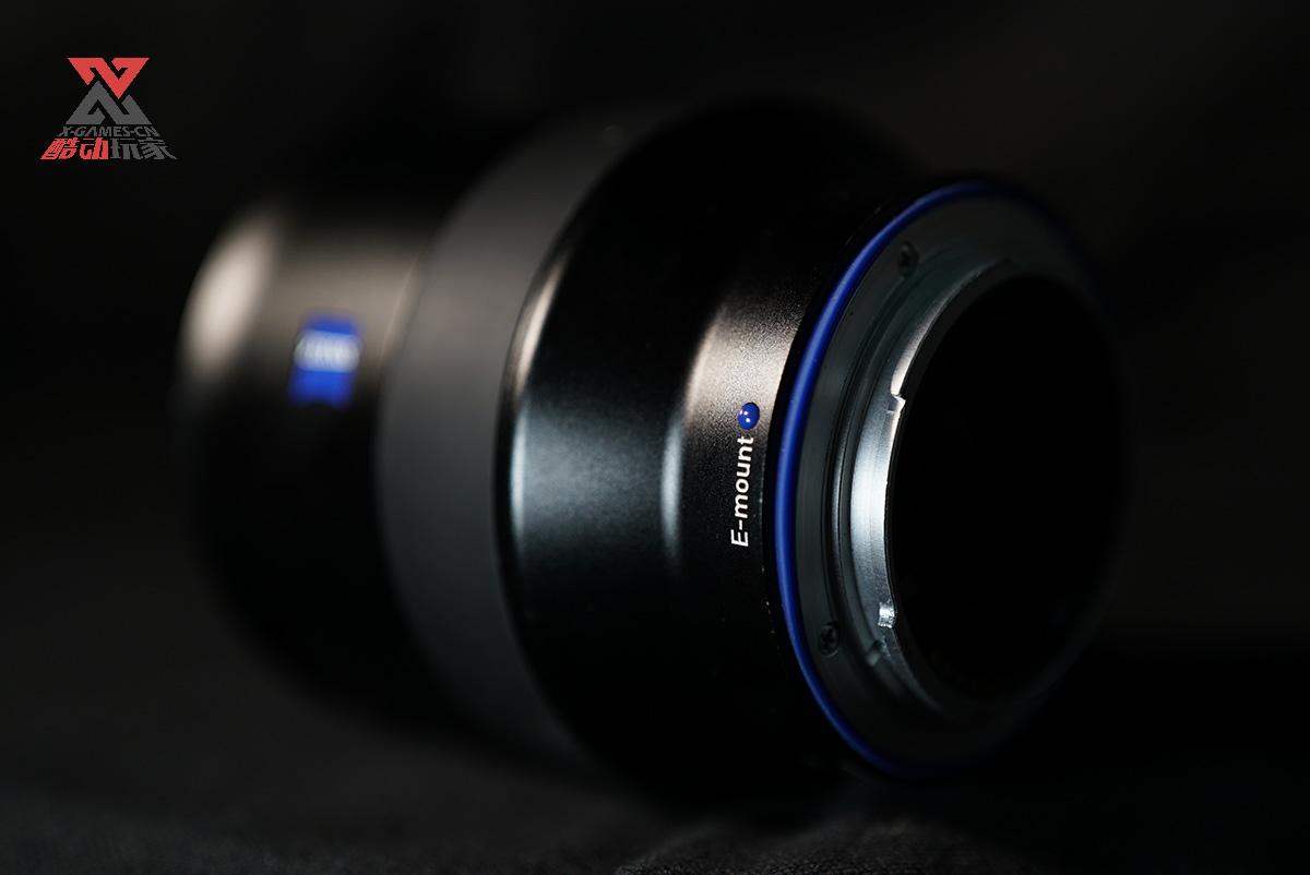2.8光圈的尾端的通光孔比较大,全金属接口非常醒目,边缘一圈就是标志性的蔡司蓝色垫圈。整个尾部没有任何的光圈控制拨杆,所有的光圈控制和对焦信息和均通过上方的金手指触点完成和机身的传递。