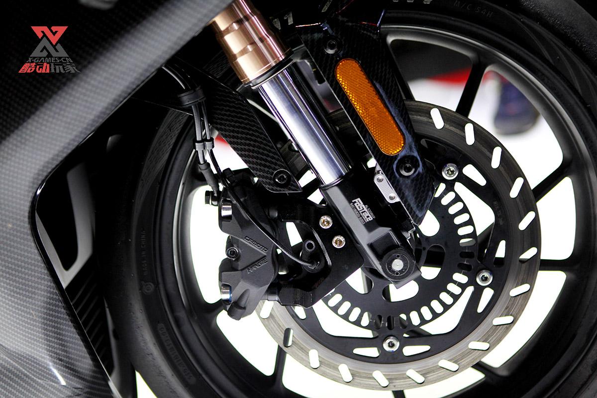 黑武士也加装了类似杜卡迪V4S的定风翼,在高速下提供下压的稳定力。只是不知道在250cc级别发动机上,这块定风翼的在多快的速度起作用?是100公里时速么?