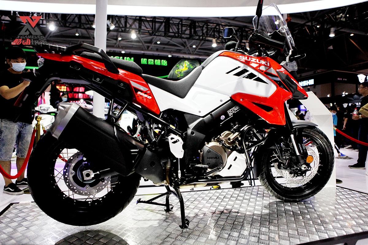 济南铃木在本次展会重点展示了公升级排量的ADV车型,小排量的巡航车与复古通勤车型。