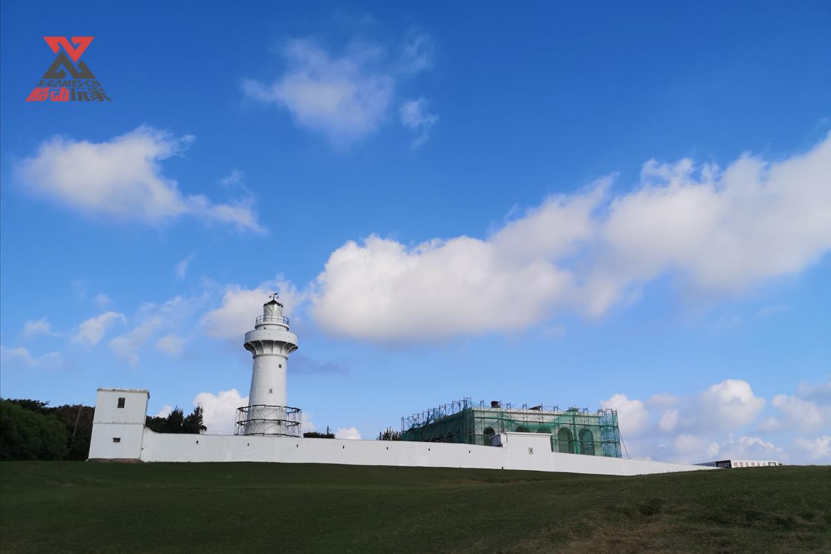 蓝天白云下伫立在草坪上的白色灯塔,在夜晚向远方海洋上的船只指明了黑暗中前进的方向。塔身与蓝天中的白云交相辉印,如果不是这几张搭建起来的脚手架,或许整个画面会更加和谐吧。