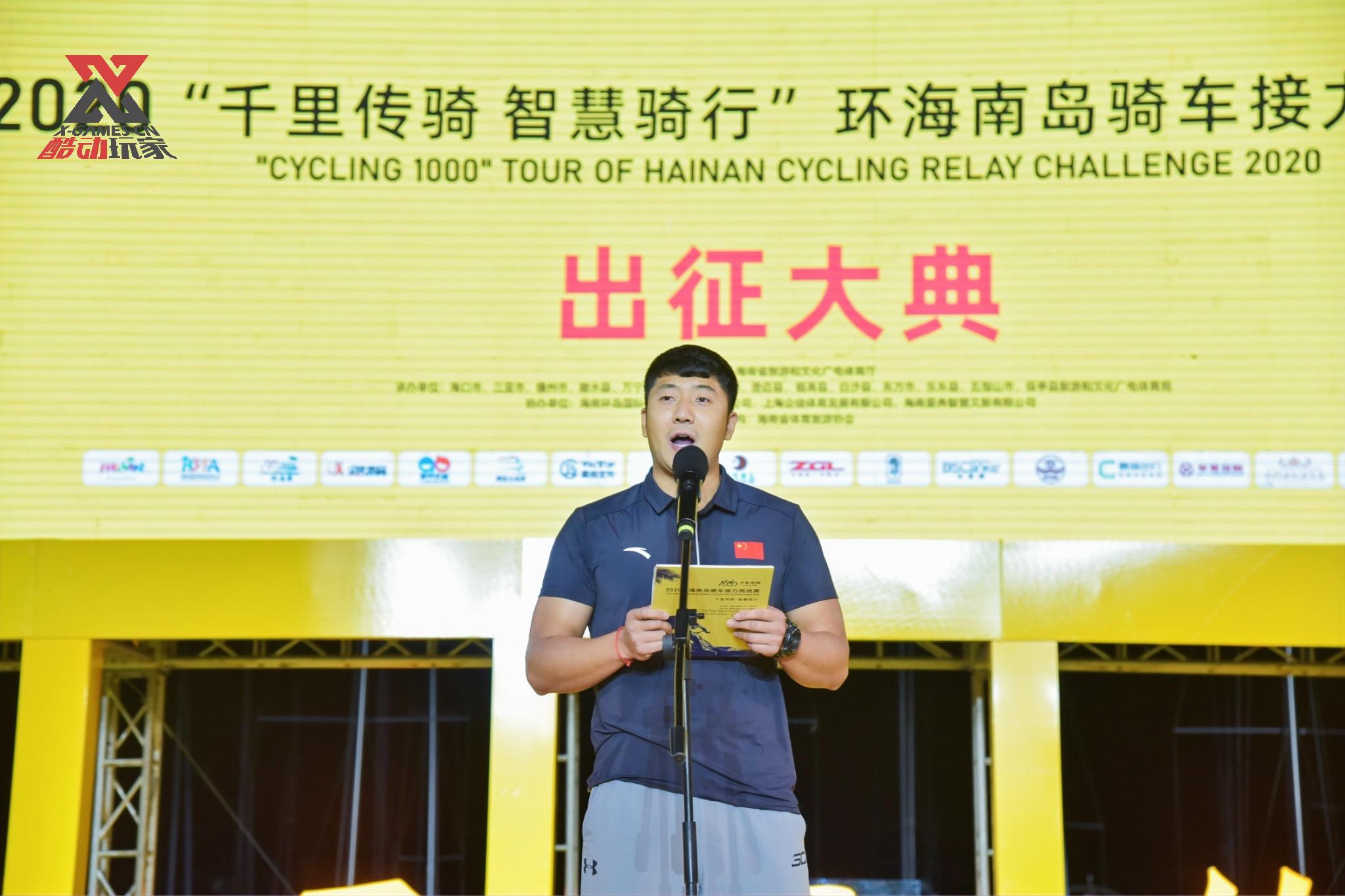 典礼现场,还安排了来自不同领域的嘉宾,共同探讨自贸港建设背景下自行车运动、体育旅游融合、体育赛事精神等议题,为轻松娱乐的出征仪式赋予更深刻的内涵。皮划艇漂流世界杯冠军毛庆结合自身经历和感受,进行了《赛事精神:自由、自律、挑战、坚持、合作、荣耀》宣讲;本次比赛战略合作伙伴-上汽大通房车生活家市场营销总监李小峰以《新中产的健康运动与多彩生活》进行宣讲,聚焦体育运动与健康生活方式;上海企徒体育董事长、千人走戈壁赛事创始人赵超带来《丝路精神、企业家精神与环岛骑行》宣讲发言,就赛事搭建商务社交平台、拓展骑行运动社交功能等进行探讨。