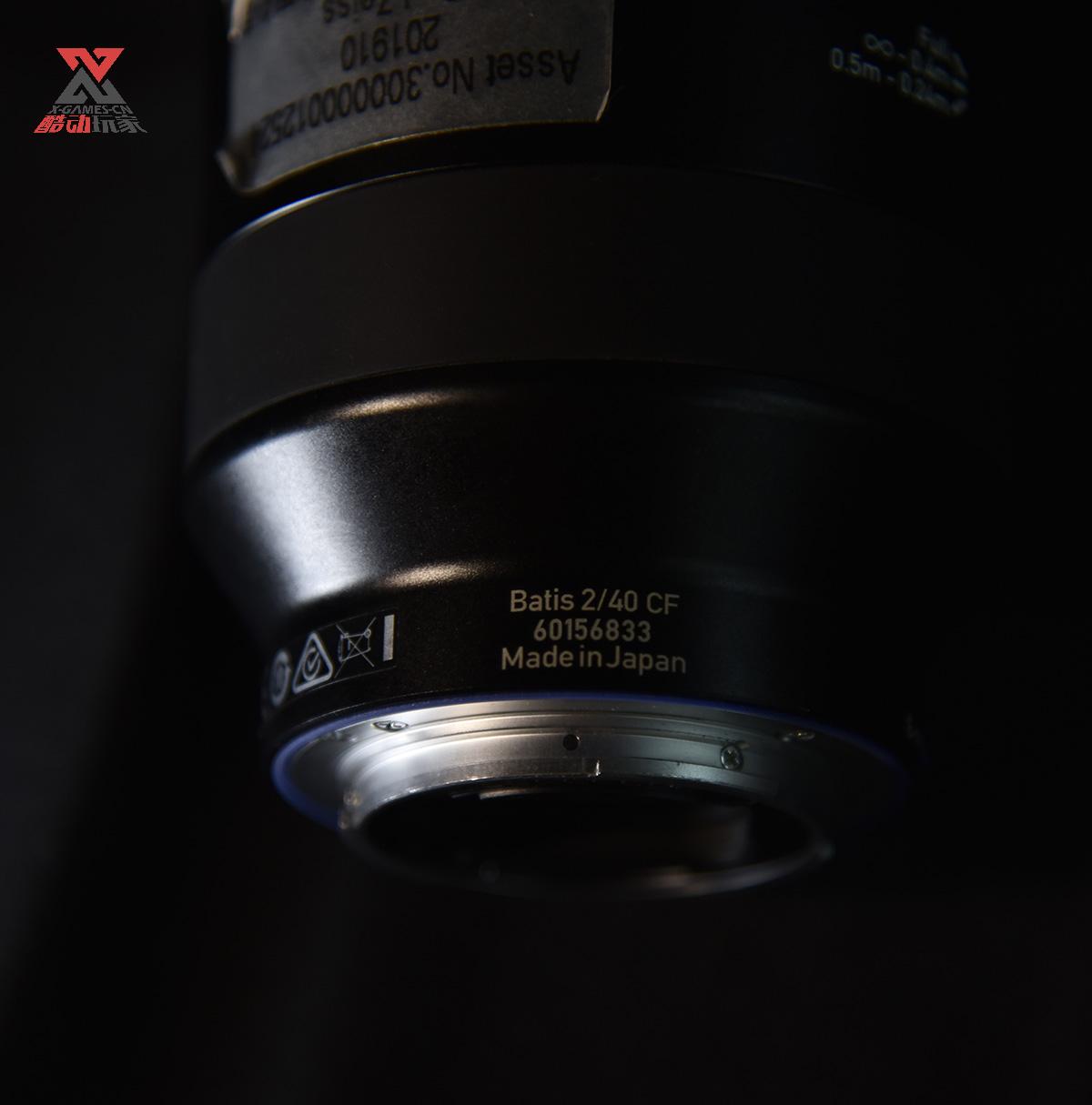 2.8光圈的尾端的通光孔比较大,全金属接口非常醒目,边缘一圈就是标志性的蔡司蓝色垫圈。整个尾部没有任何的光圈控制拨杆,所有的光圈控制和对焦信息和均通过上方的金手指触点完成和机身的传递。
