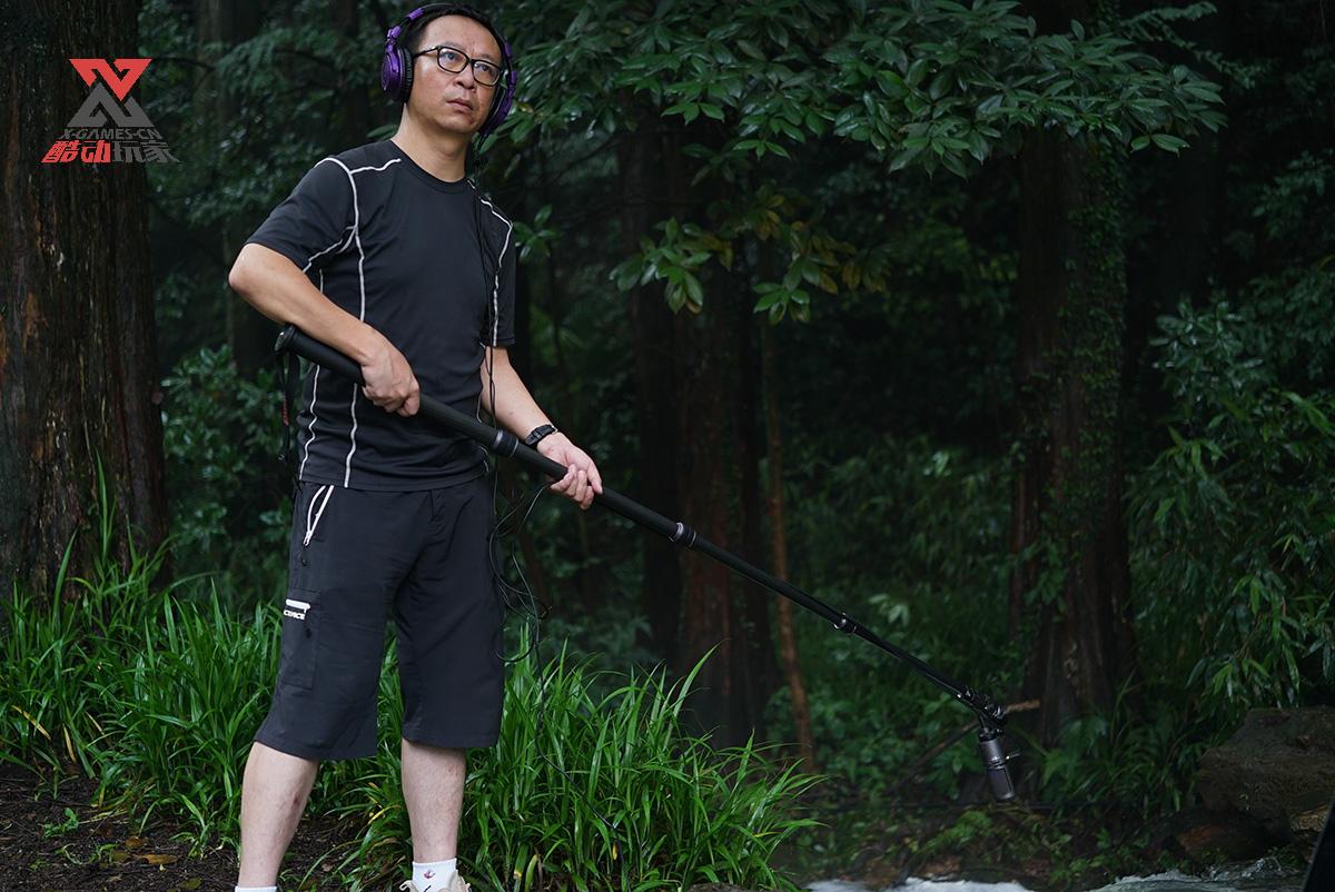 这款话筒实际主要的用途是桌面使用,应对配音和朗读,以及近距离现场乐器配音。为了录制溪流的声音,我们单独配备了一个延长杆,并且带上了铁三角的ATH—M50X话筒做实时监听。
