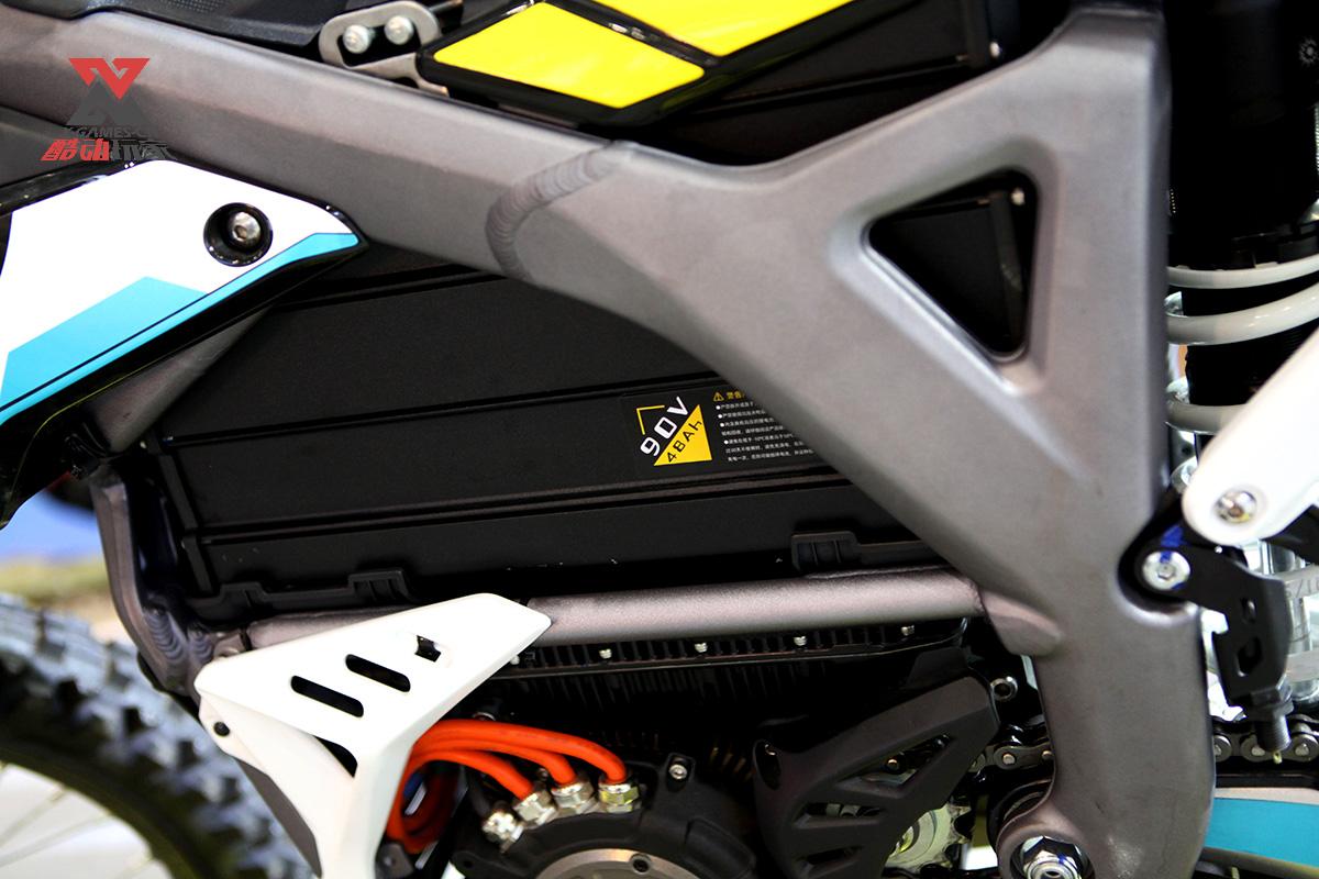 如果不是没有排气管,乍一眼看上去,这和一台烧油的专业越野摩托车并无两样。没错,这就是一台专业越野车,只不过是纯电驱动的。整车重量含电池123公斤,最高车速大于110km。0到50千米加速时间1.8秒。