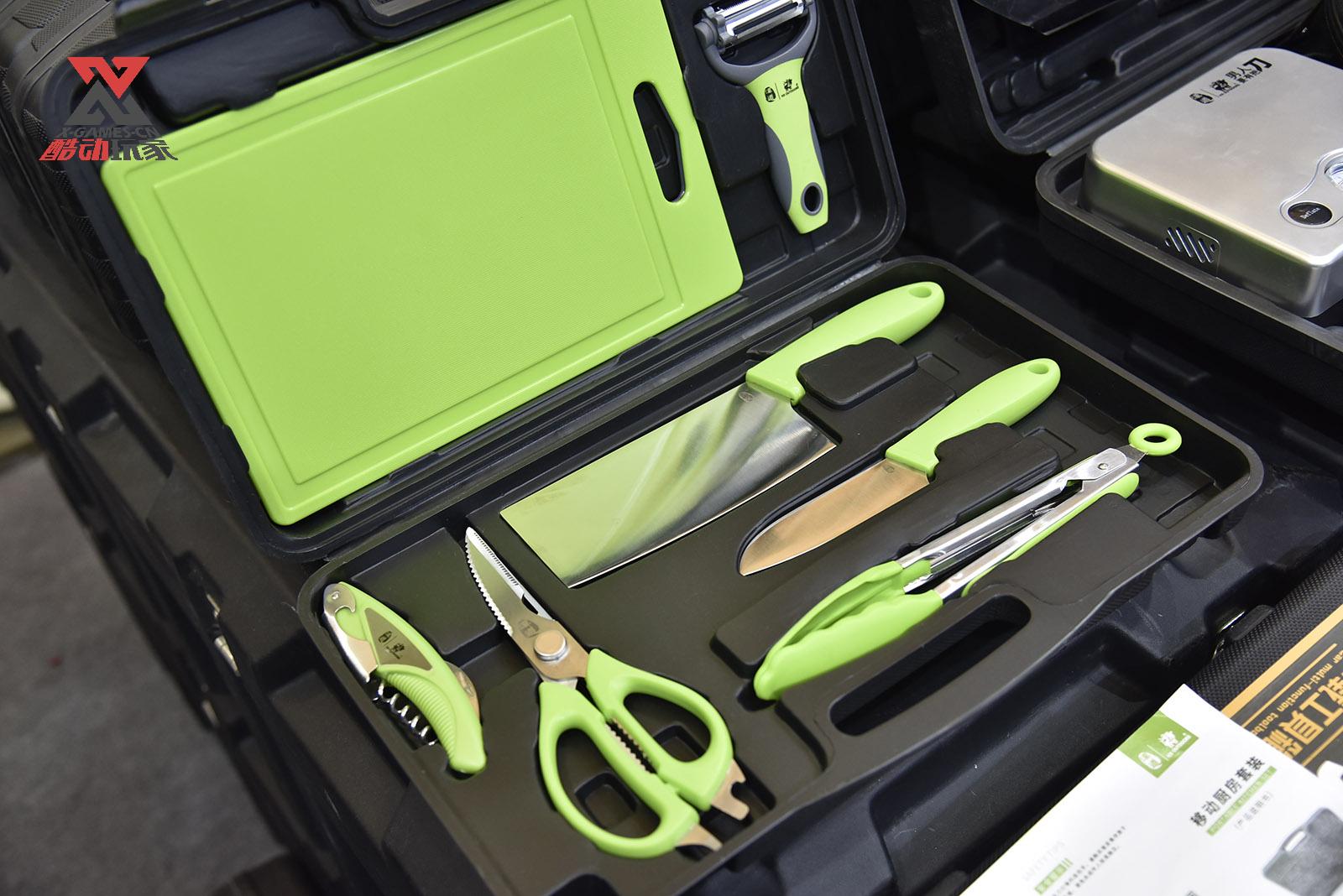 本次ISPO展会上汉道推出了户外旅行的厨房刀具。在一个工具箱里有菜刀、小刀、多功能剪刀、削皮器、夹子、开瓶器、切菜板等6种工具,非常适合野营使用,装在一个工具箱里也保证了安全性。